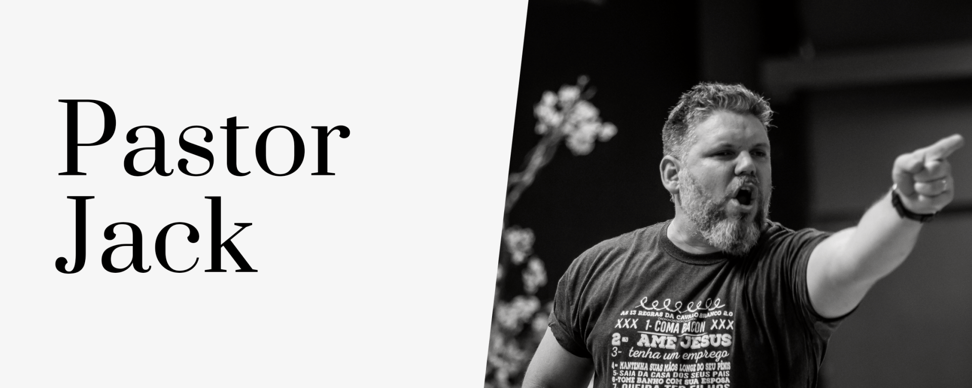 PR. JACK – Bom, então, eu notei que Deus tinha me chamado para isso, de forma honesta… [pode parecer pedante, cara, pode parecer orgulhoso, mas não é] Eu acredito na Bíblia, eu acredito no que Jesus falou, eu acredito que Jesus é Deus. Ele veio, Ele morreu, Ele ressuscitou ao terceiro dia e Ele comissionou apóstolos para pregar. Eu acredito na palavra que os profetas pregaram, que os apóstolos pregaram e, para mim, a Bíblia (ela) é o livro mais honesto que já foi escrito. O problema é que os pregadores não são honestos, entendeu?! E eu procuro ser um pregador honesto com o povo. Na verdade, eu não me acho assim uma coisa tão ofensiva, né, que não tenha papas na língua – eu acho que a Bíblia é assim. Eu procuro ser fiel à Bíblia, entendeu, então essa é a visão que eu tenho.